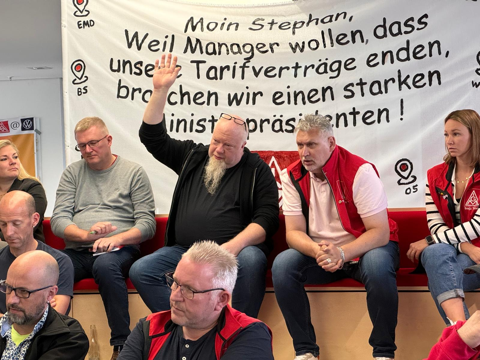 Die IG Metall Fraktion machte deutlich dass sie nun einen starken Ministerpräsidenten an ihrer Seite brauchen, weil dem Management nichts anderes einfällt, als die 30 Jahre fortbestehende Beschäftigungssicherung und sechs Tarifverträge aufzukündigen.