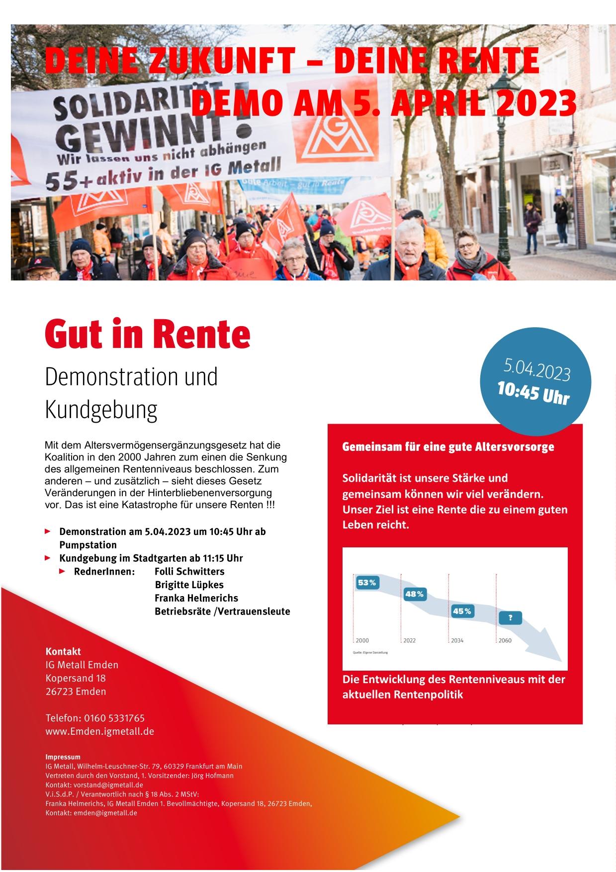 Gute Renten für alle Generationen - dafür kämpft die IG Metall Emden mit ihrer Rentenkampagne.
