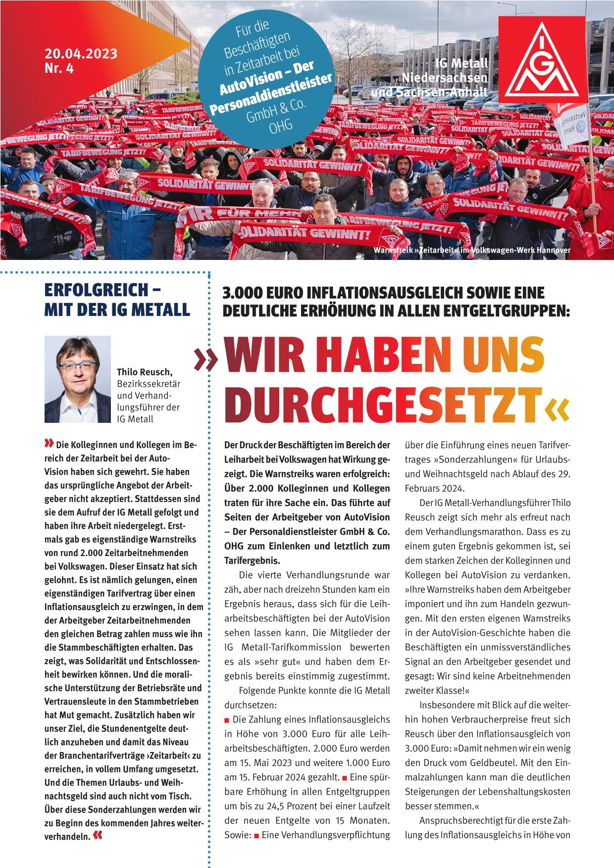 ■ Die Zahlung eines Inflationsausgleichs in Höhe von 3.000 Euro für alle Leiharbeitsbeschäftigten.